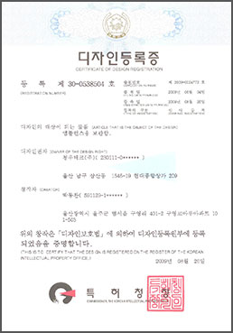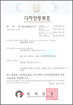 | 12 | 디자인등록증 | 2009-06-04 | 제 30-0538503 호 | 앰뷸런스용 칸막이 |