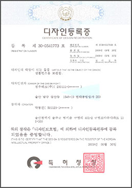 | 20 | 디자인등록증 | 2017-11-16 | 제 30-0970244 호 | 부력구조물용 연결구-1 |