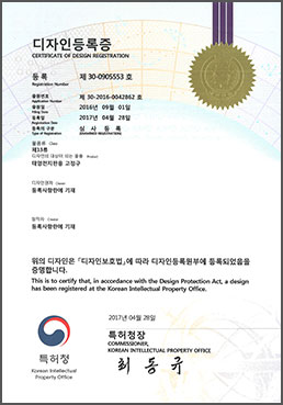 | 18 | 디자인등록증 | 2016-09-01 | 제 30-0909684 호 | 태양광 발전설비용 부력체 |