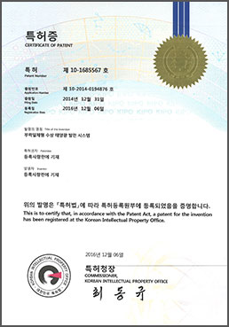 | 4 | 특허증 | 2014-12-31 | 제 10-1685567 호 | 부력일체형 수상 태양광 발전 시스템-2 |