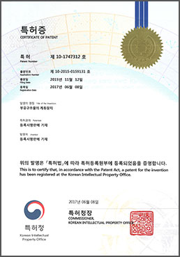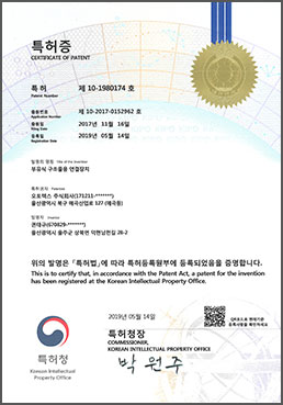 | 11 | 특허증 | 2019-12-17 | 제 10-2293141 호 | 수상 부유 시설물용 부력체 |