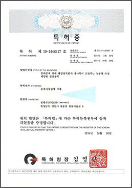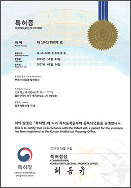 | 3 | 특허증 | 2014-12-31 | 제 10-1685566 호 | 부력일체형 수상 태양광 발전 시스템-1 |