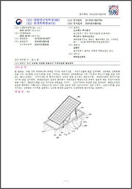| 23 | 특허출원 | 2019-01-25 | 10-2020-0092754 | 능동형 태양광 모듈지지 수상태양광 발전장치 |